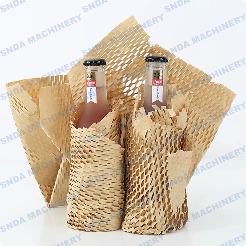 Honeycomb paper is eco-friendly and cost effective alternative for plastic bubble wrap cushioning.It is easy to stretch,more soft and flexible,provide cushion protect without surface scratch.Finished products from this machine can be used to pack fruits,flowers,ceramics,glassware,etc.