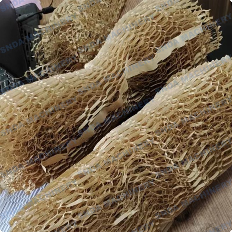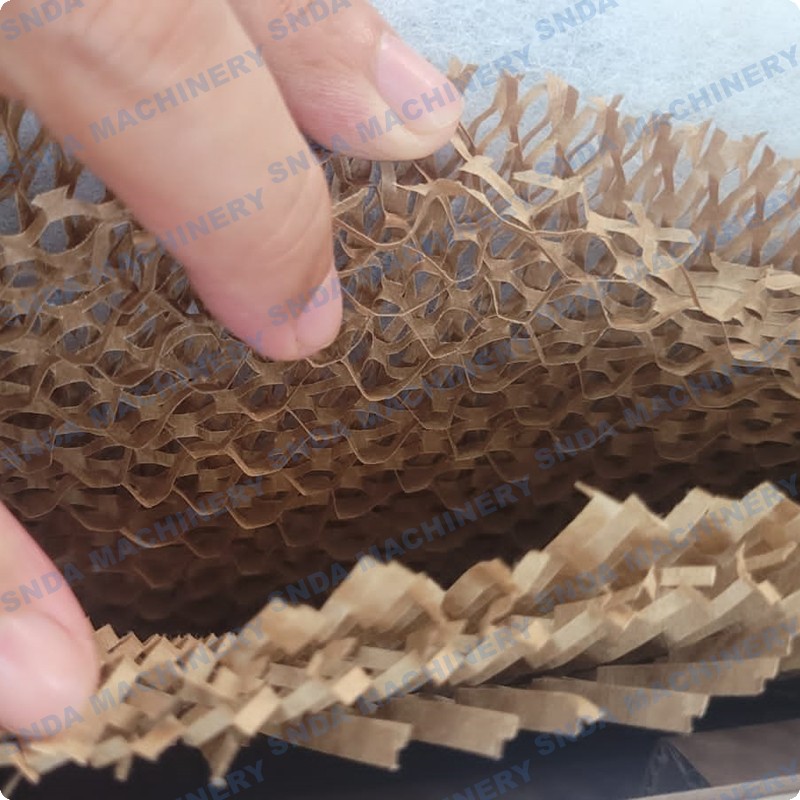Honeycomb kraft paper forming machine is very easy to use. It can be placed on a flat surface and stretched out into a net shape, or placed on a special support. It has a good cushioning effect for various products and is extremely beautiful.