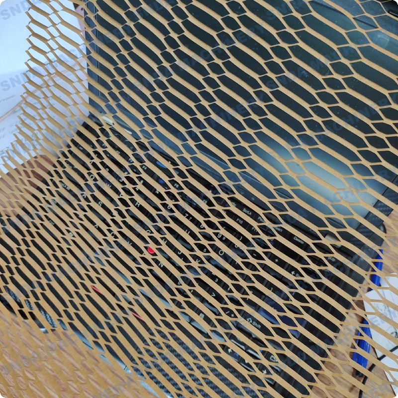 3. The packaging method is flexible, and the packaging effect can be arbitrarily exerted according to the size of the product.From the nature of packaging, the main goal is to play a protective role, thereby reducing the damage rate to a minimum. Honeycomb mesh kraft paper packaging provides your customers with suitable product packaging and good protection methods.