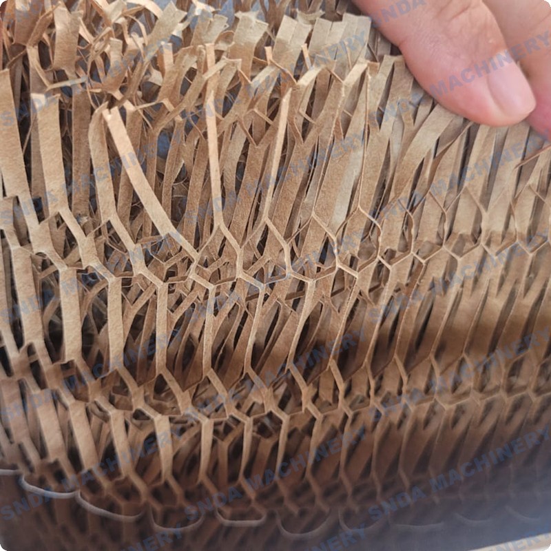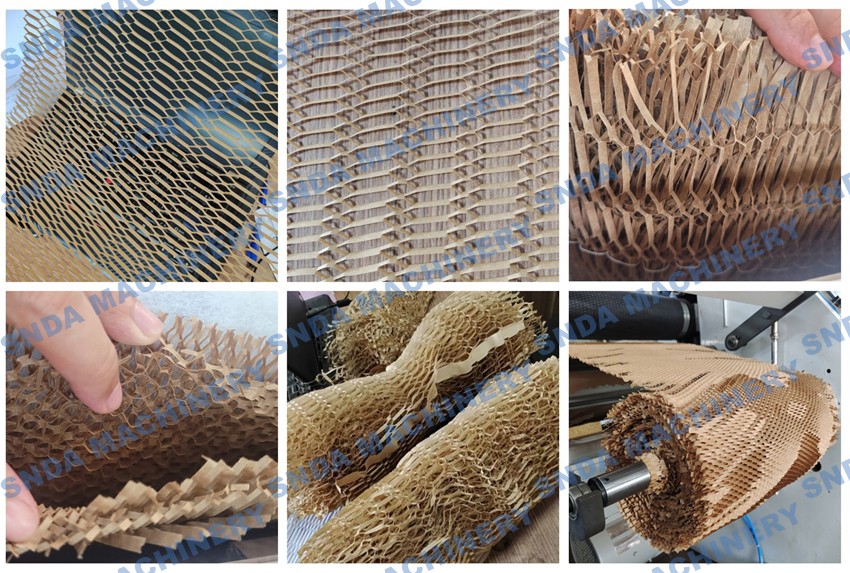 Honeycomb kraft paper forming machine is very easy to use. It can be placed on a flat surface and stretched out into a net shape, or placed on a special support. It has a good cushioning effect for various products and is extremely beautiful.