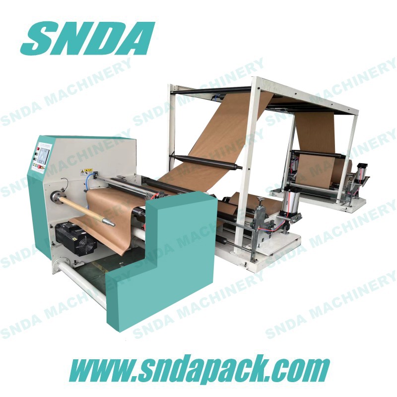 This paper rewinding machine is used to rewind two kraft paper roll to one finished roll,means we can finally get two layer kraft paper,by this finished two layer roll,we feed to the kraft paper cushion making machine or cushion pad forming machine and then the two layer paper will supply stronger cushion effect than 1 layer.